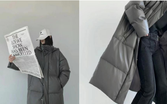 第二套保暖极简风,灰色PU皮长款羽绒服外套,保暖防风,灰色低饱和度尽显高级,PU皮的丝滑触感将冬日氛围感满分营造。开年复工必须要保暖,低调上班,高效完成工作。
