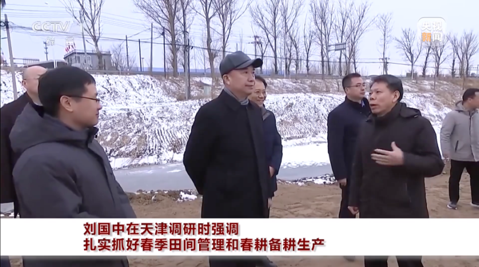 央视披露的画面显示,在天津,刘国中了解了天津市农业生产情况。