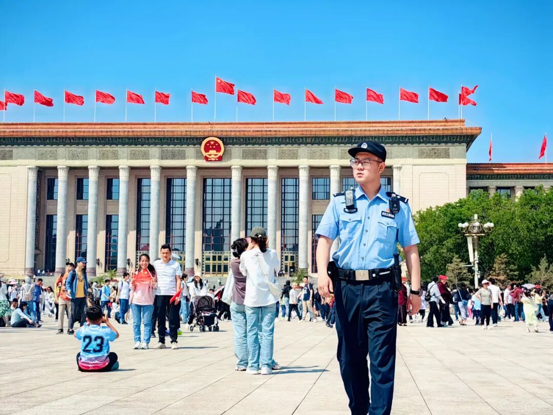 他是自天安门分局的刘家兴,执守在天安门广场四季如常,日夜以继酷暑的汗霜在他的警服上结过一层又一层,严冬的寒冷也曾透过执勤鞋冻得他刺骨难耐。他为五湖四海的游客提供贴心服务,为全国的群众留下美好的天安门回忆,为祖国心脏的安全稳定贡献自己的青春力量。