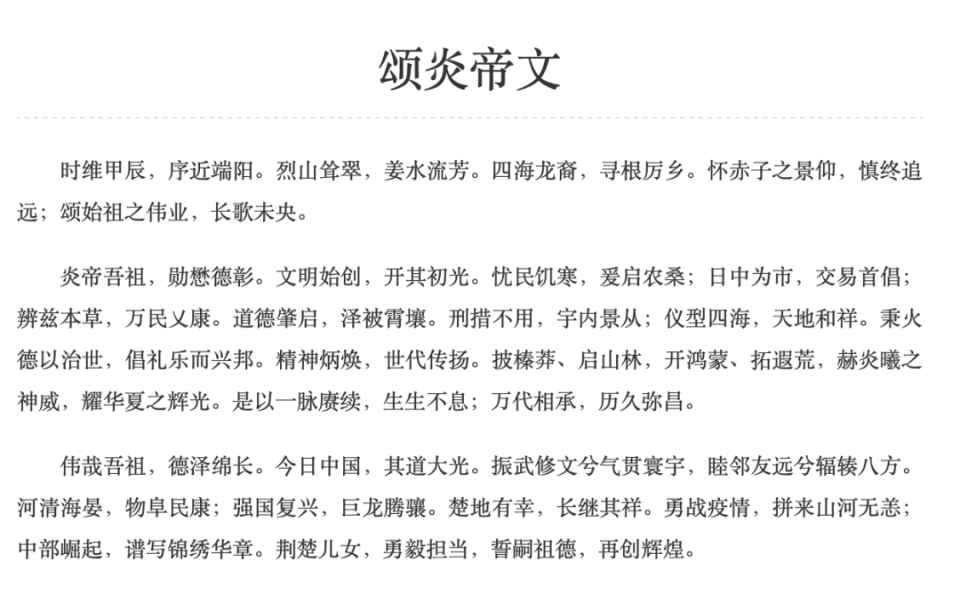 今年的《颂炎帝文》提到了“勇战疫情”“中部崛起”等。