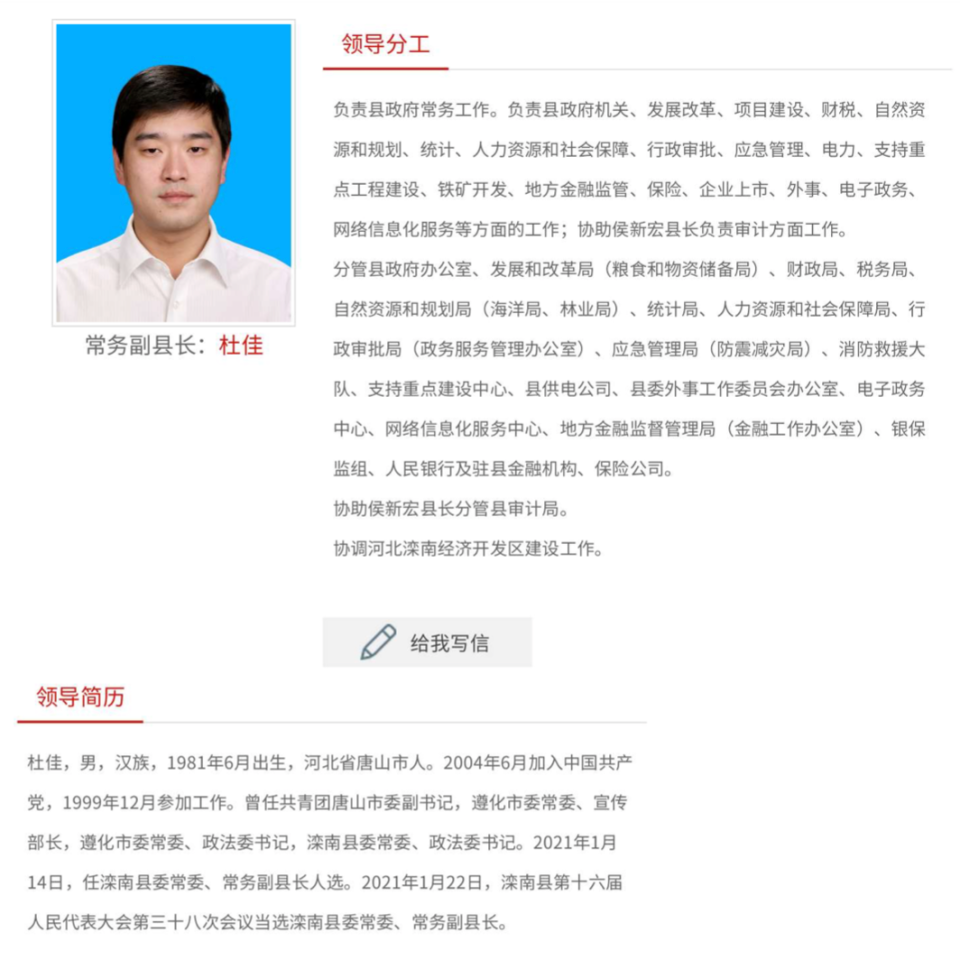 公开资料显示,他2004年6月加入中国共产党,18岁(1999年12月)参加工作,曾任滦南县常务副县长,唐山市高新技术产业开发区党工委委员、管委会副主任等。