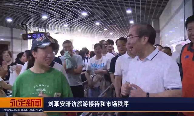 在天门山索道公司下站,刘革安走近正在排队的游客队伍,与景区负责人、游客等深入交谈,详细了解景区客流量、游客接待服务、安全管理等情况。