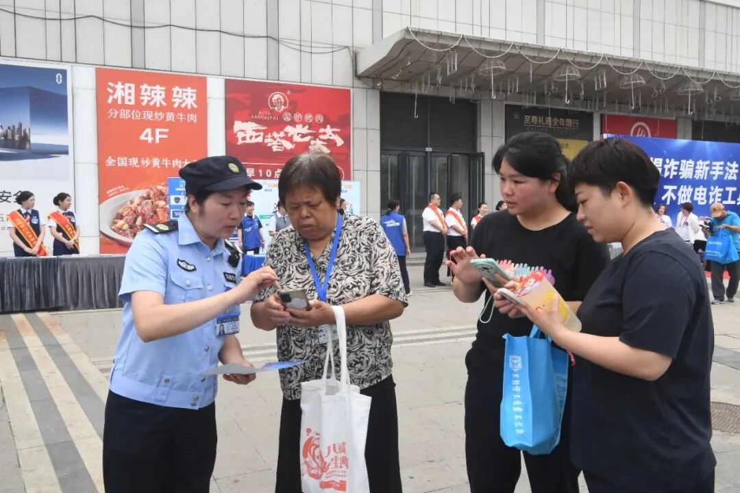 与此同时,在室外的华联商圈,也进行着一场反诈宣传活动,分局反诈中心民警和中国联通公司、交通银行、胜利街道反诈宣传工作人员立足各自职责领域,纷纷向过往群众宣传涉“两卡”、“跑分”洗钱等电信网络诈骗关联违法犯罪行为常识,普及高发电诈类型识别防范技巧。隆华广场室外巨幕电子屏,也滚动播放反诈宣传视频《破诈》,立体式增强宣传广场整体反诈氛围。