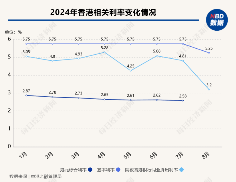 在美联储今日凌晨降息后,香港金融管理局随之也宣布,基本利率根据预设公式定于5.25%,下调50个基点。