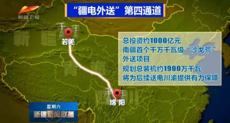 第四通道:2024年9月28日开工建设,名称是疆电(南疆)送电川渝工程,起点是巴音郭楞蒙古自治州若羌县,总投资约1000亿元,工程建成后可大大提升南疆地区电力外送能力。