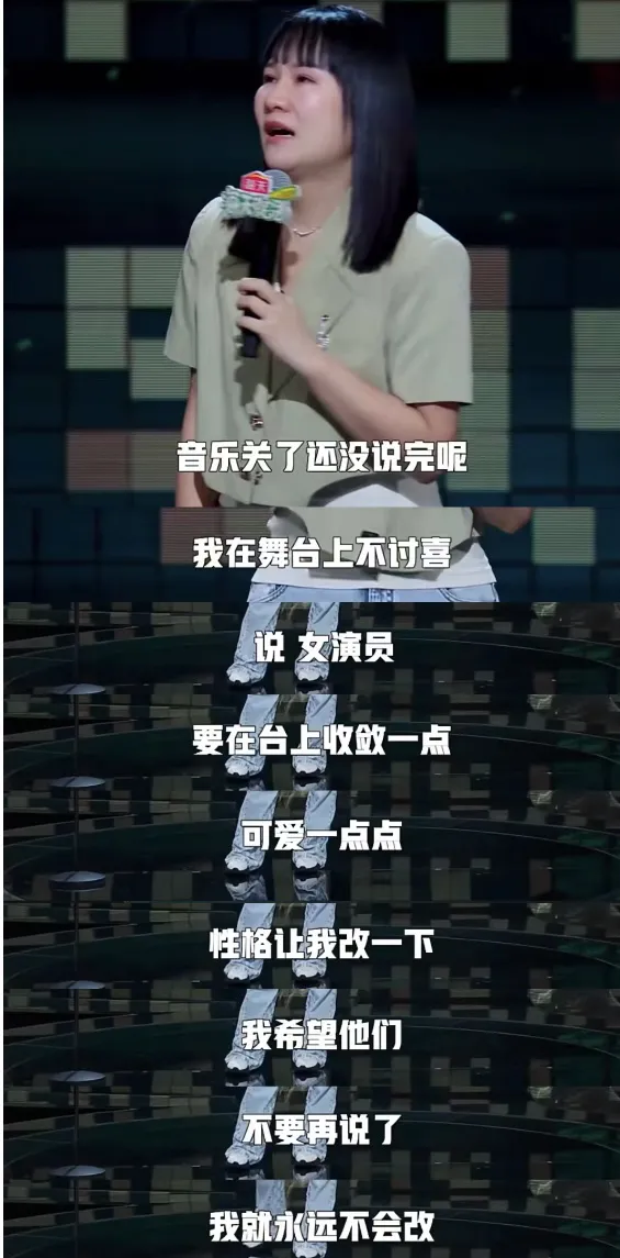 有着类似经历的Echo把痛点放在脱口秀里。与电视剧不同的是,脱口秀用“冒犯”的方式引发大家思考。“我们一定要很努力,才能看起来和儿子一样毫不费力。”她调侃自己,“现在混的一般,一无所有,有一点羡慕那些留在家乡的姐妹们了,他们连前夫都有了。”家里穷到“六个人要乘一辆摩托车”,你想说这么没有安全意识,她立马自嘲,“我父母要是有安全意识,也不会有这么多人了。”Echo形容一家六口的人际关系正如复杂的“职场”,“我们从小就生活在职场里,就为了讨好那两口子。”她讲述自己改变命运,考上大学,走出大山;经常被打的二姐,在14岁时离家出走,至今从未与家人和解。在段子的最后,她感恩父母,“感谢你们让我走出大山,也希望在场所有的朋友都可以走出自己的大山。”许多人笑到最后,真的笑出了共情的眼泪。