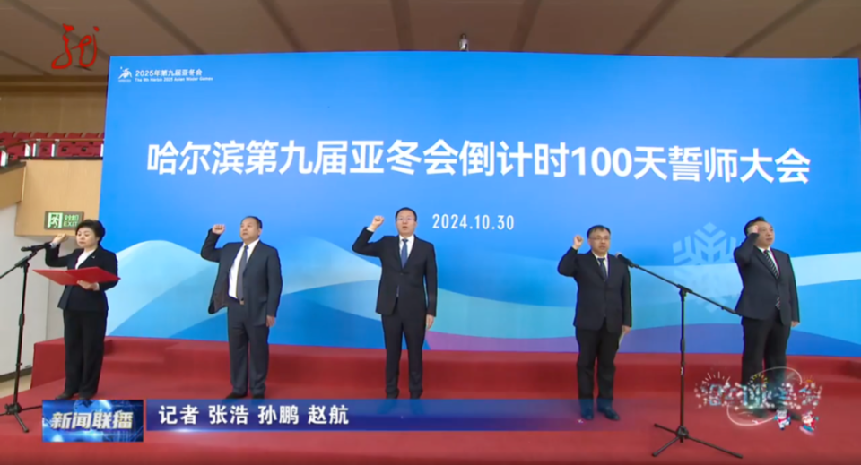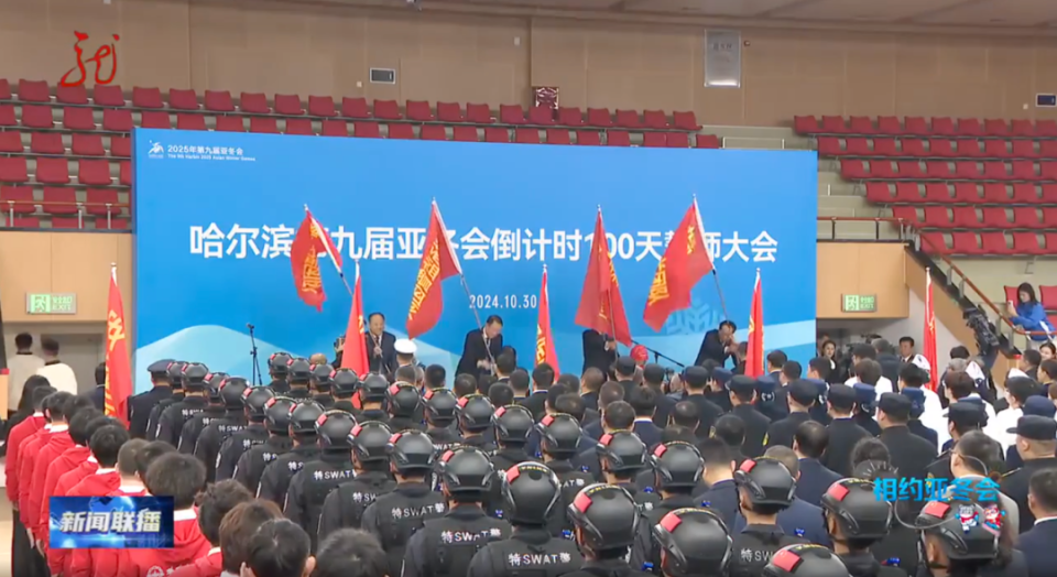 2024年10月30日,第九届亚洲冬季运动会倒计时100天誓师大会在哈尔滨召开,黑龙江省委常委、哈尔滨市委书记于洪涛作动员讲话。