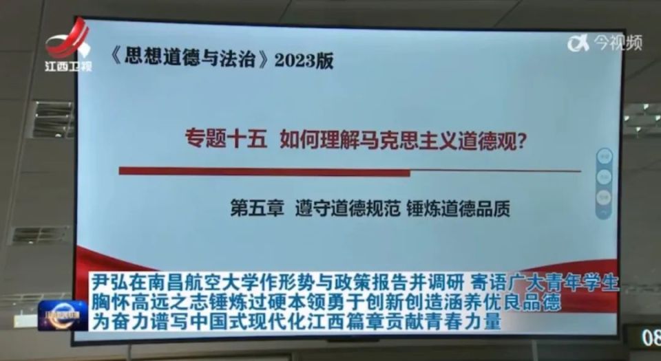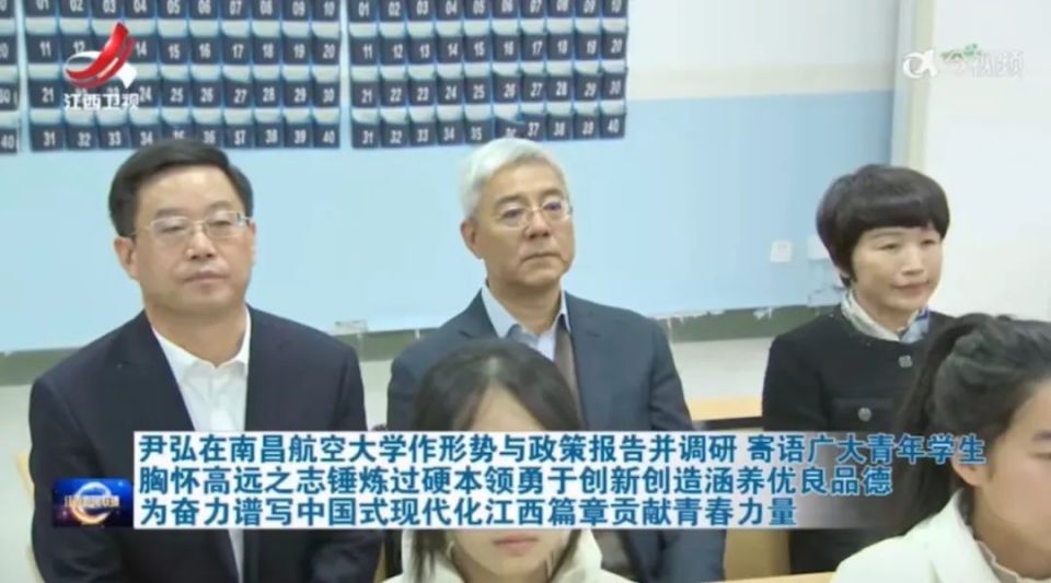 在南昌航空大学,尹弘还化身“大学生”,走进教室,与孝彭书院强五实验班学生一起听了一节思政课。