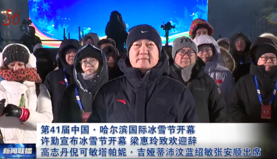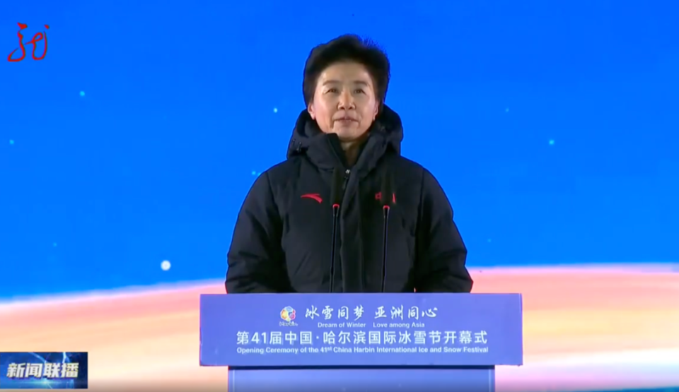 1月5日,黑龙江省委书记许勤、省长梁惠玲和国家体育总局局长高志丹等齐聚哈尔滨冰雪大世界。