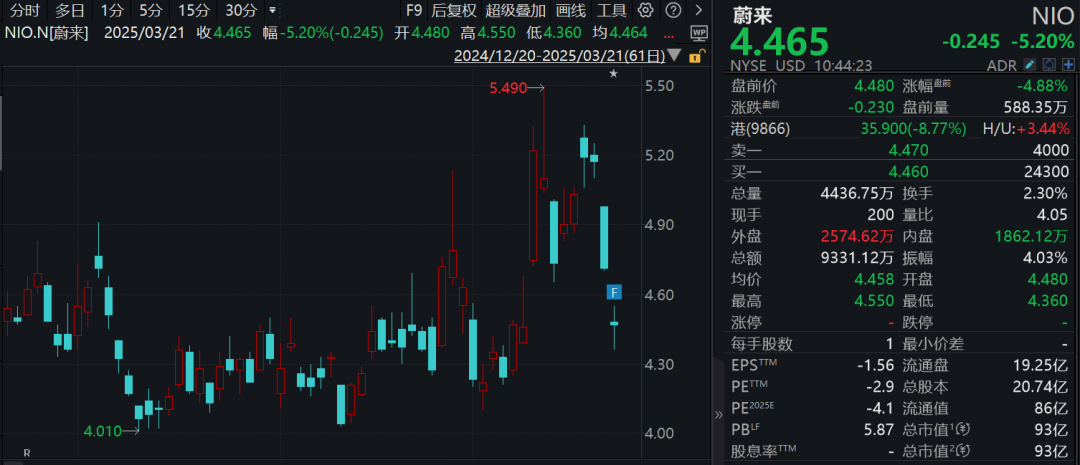 业绩发布后,蔚来股价大跌,截至发稿跌幅收窄至5.2%。