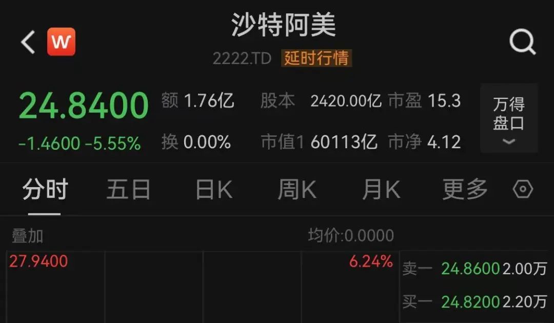 沙特全指开盘后暴跌超5.5%,创下2020年以来最大跌幅,沙特阿美股价一度大跌超6%,市值蒸发约900亿美元。