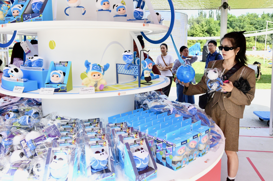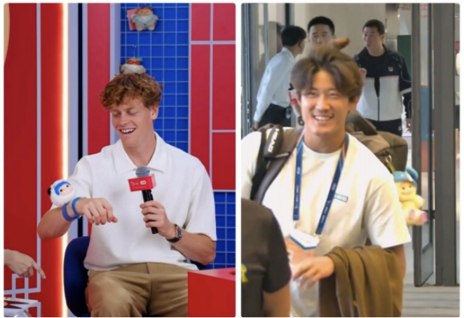 更有趣的是,这些潮玩不仅在快闪店销售火爆,更成为赛场内外备受球星与球迷喜爱的“新宠”。张之臻、辛纳等中外网球明星纷纷在赛场内外佩戴、展示联名手环与毛绒公仔等产品,瞬间带动一波“明星同款”热潮,成为赛场一道独特的风景线。