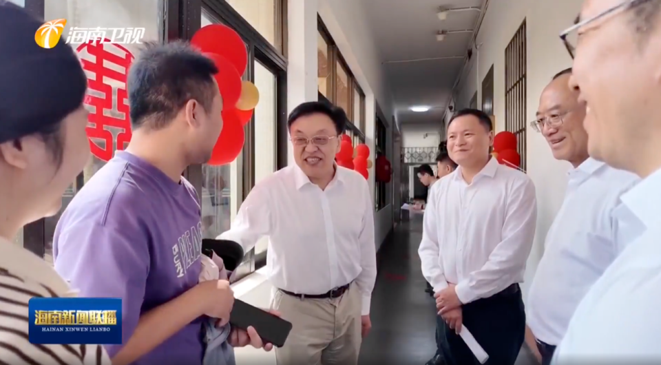 当日,海南省委书记冯飞前往琼山区民政局婚姻登记处。他走进结婚登记处、婚姻宣誓厅,与新人亲切交流并送上诚挚祝福,要求民政部门要进一步提高办事效率,努力为群众提供便捷、高效、优质服务。