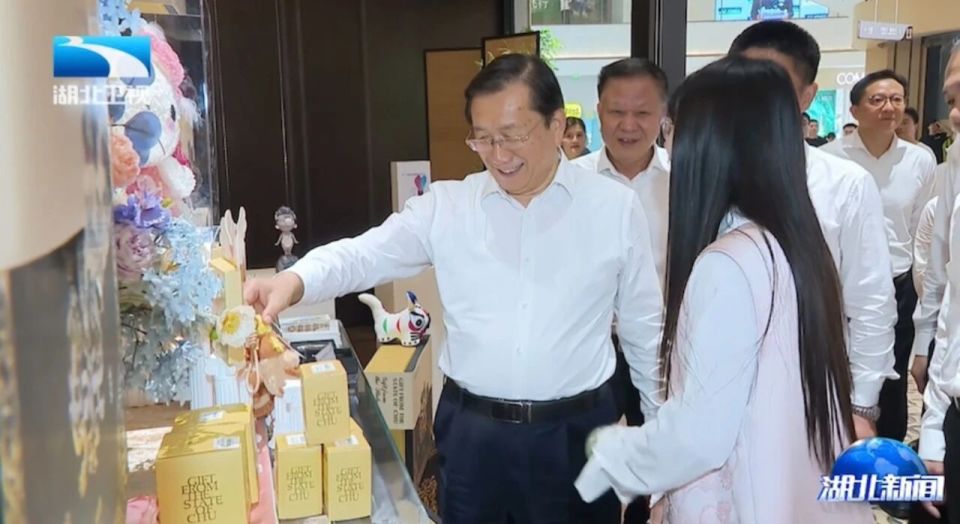 同一天,在湖北,刚刚开业的武汉滨江天街商业综合体内,顾客络绎不绝。湖北省委书记王忠林走进“楚国礼物”文创店、“庐月又”城市书院等商铺,和商户亲切交流、了解经营状况。