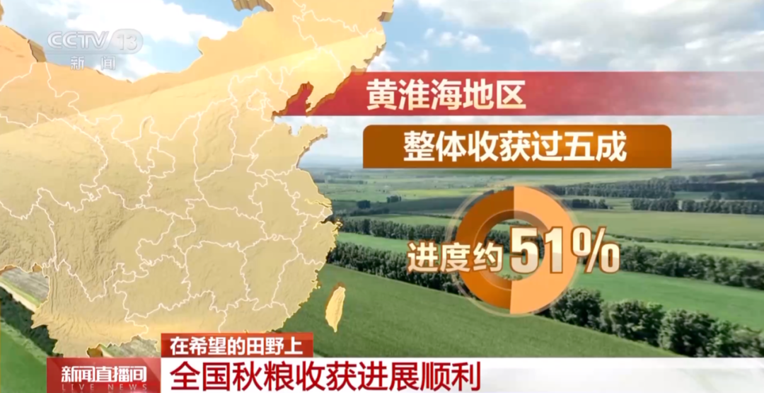 10月7日的消息显示,黄淮海地区整体收获过五成,进度约51%。其中,山东近期秋雨偏多,秋收工作刚刚展开,河南秋作物已收获约29%,以玉米、花生为重点;安徽收获近两成等。