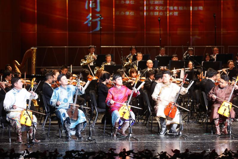 舞台上,既有描绘北国冰雪韵味的《冬趣波尔卡》、朝鲜族民歌《桔梗谣》的亲切回响,也有马头琴与交响乐激情碰撞的《万马奔腾》;既有中央歌剧院艺术家精湛演绎的《饮酒歌》《笑之歌》等世界歌剧经典选段,展现了国家院团的艺术水准,也有来自甘肃省歌剧院的原创歌剧《呼儿嘿哟》选段《灯芯闪烁》,散发着浓郁的陇原风情;既有吉林大学艺术学院学子献唱的《我的双唇如此火热》,体现了人才共育的扎实成果,也有来自贵州的歌曲《走近黄果树大瀑布》,勾勒出鲜明的地域文化特色。中央歌剧院院长刘云志的小提琴独奏《爱的致意》,如涓涓细流,传递出艺术的温暖与深情。最后,在中央歌剧院合唱团、吉林大学艺术学院合唱团等共同唱响的《欢乐颂》与《歌唱祖国》的雄壮歌声中,整场演出落下帷幕。