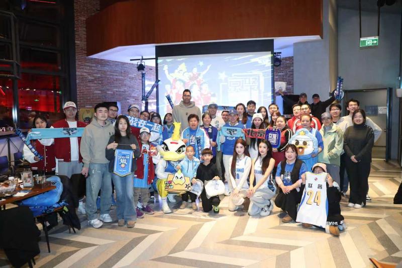首战胜利的荣光,属于在赛场上征战的球员,更属于每一位呐喊的球迷。远赴江苏客场的球迷远征军,用震彻体育馆的“北京加油”为球队呐喊助威;而在北京首钢园香啤坊的“京聚云观赛·第二现场”,数十位球迷早已热血集结,因伤未能随队的球员丘天惊喜空降,瞬间点燃现场氛围。这晚,霹雳鸭互动、趣味抽奖等环节轮番上演,美食佳酿与热血赛事相伴,这里成为了球迷们的专属狂欢地。