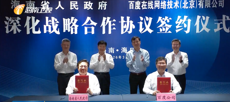 3月2日,海南省政府与百度签署深化战略合作协议。根据协议,双方将成立战略合作协调推进小组,建立常态化、制度化工作机制,在促进智能网联汽车数据跨境有序流动、打造智能网联汽车产业生态高地等方面进行探索。