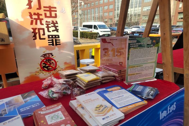 作为本次活动的重要内容之一,黄河财险北京分公司特别开展了反洗钱法律法规宣传。工作人员手持"识法筑盾 共学反洗钱新法"横幅,向市民讲解反洗钱相关知识,帮助公众了解洗钱犯罪的危害性,增强识别和防范洗钱风险的能力,共同维护金融安全。