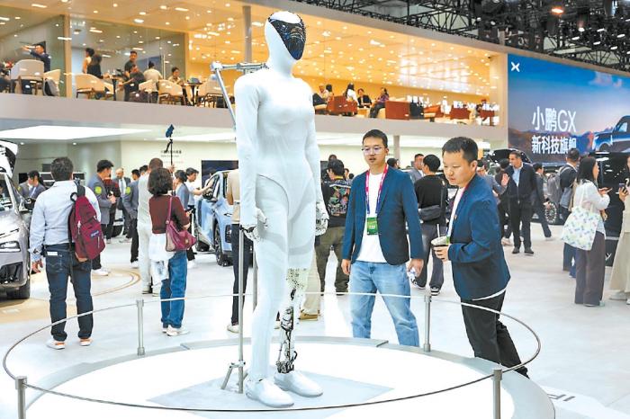 会场展出的人形机器人是小鹏自研物理AI体系的具象落地,与AI汽车、飞行汽车共同展现物理AI改变未来的科技实力。