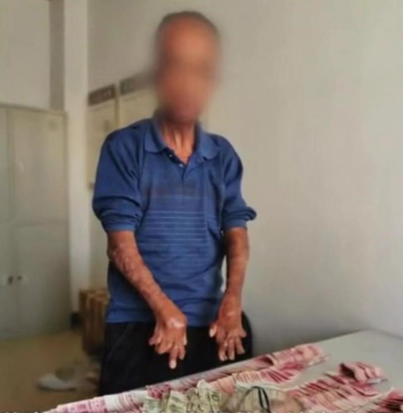 9月19日中午,北青报记者从辽阳救助管理站了解到,9月17日,救助站在巡查辖区早市时,在路边发现该男子,“当时他正在路边乞讨,看着很可怜,工作人员就上前去询问。”他表示,该男子面部、手部均有烫伤,且手部烫伤相对比较严重,“有几个指头已经烫没了,工作人员就问他,有没有讨到钱,男子答复说讨到了不少,然后工作人员就从他随身携带的包里发现了大量现金。”