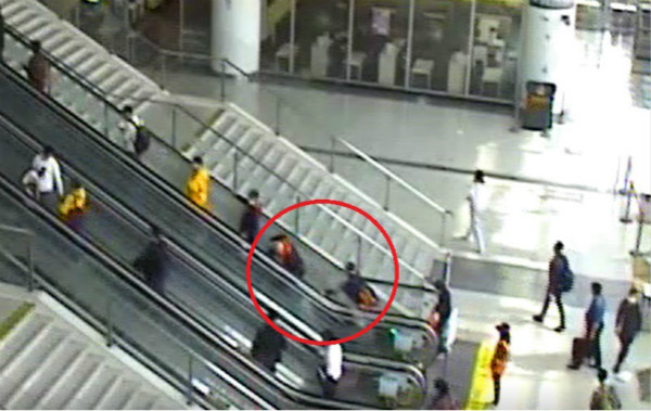 旅客带娃上自动扶梯摔倒 民警5秒飞奔紧急救助