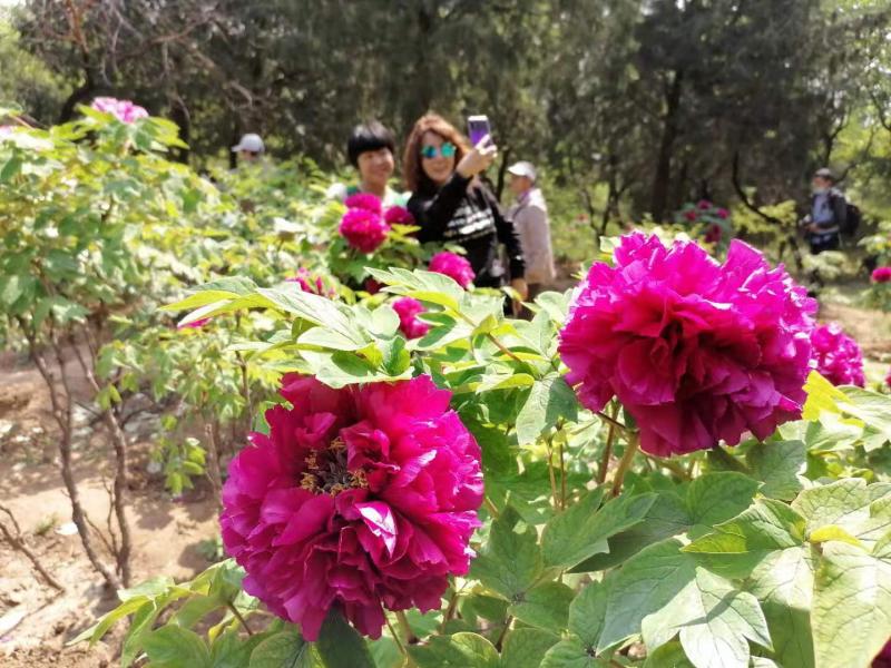 据悉,北京牡丹文化节7大展区分别位于北京西山国家森林公园、景山公园、颐和园、北京植物园、世界葡萄博览园、旧县镇妫州牡丹园和大榆树镇国色牡丹园。其中,北京西山国家森林公园牡丹园的种植面积达4.7万平方米,栽植了8000余株牡丹、3000余株芍药。在设计上,随山势起伏,与油松搭配,采取自然台地式种植,充分衬托出牡丹色艳香清的特点。