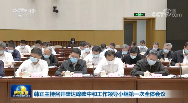 4月26日的“碳达峰碳中和工作领导小组第一次全体会议”,意味着我国推进碳达峰碳中和工作的又迈出了重要一步。画面显示,主持这次会议的是韩正。