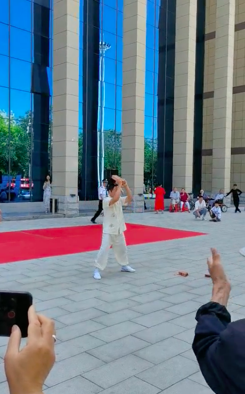 6月9日,北青-北京头条记者联系到了当时在现场表演劈砖的刁秀果。刁秀果称,他并非是非遗传承人,只是正在申报,当天他是被另外一个朋友叫到现场去看看。“我在我们这边看门,基本上24小时都在这守着。朋友就喊我说你过来看看,怪热闹的,我就过去了。那边是个广场,谁高兴了都可以上去玩玩。”