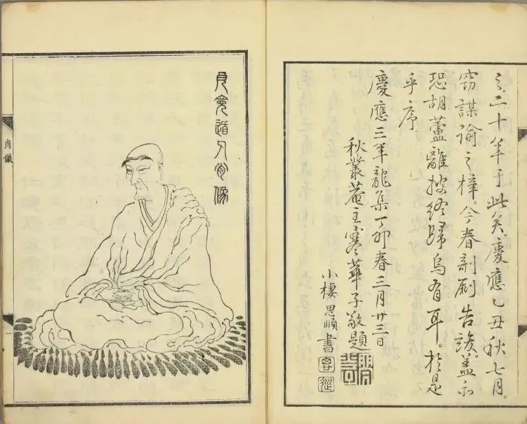 庆应三年刊《良宽道人遗稿》卷首所载良宽肖像(早稻田大学图书馆资料)