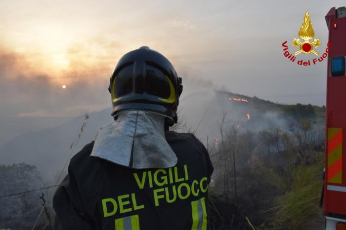8月1日,消防员在意大利西西里岛参与灭火作业。