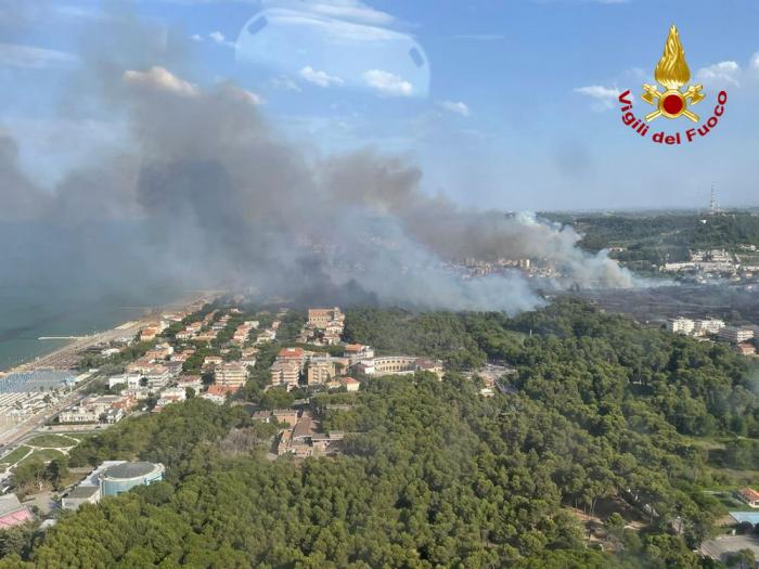 8月1日,意大利佩斯卡拉发生林火的地点冒出浓烟。