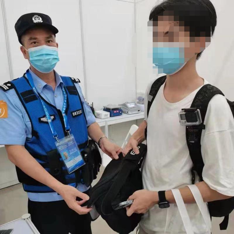 当时正值航展入场客流量高峰期,案件组民警安抚好该学生情绪后,立即兵分两路,一边查看监控录像,一边与现场安检组联系沟通,逐个安检口查找,最终在一安检口发现了事主的失物,经核对后,将失物交还事主。