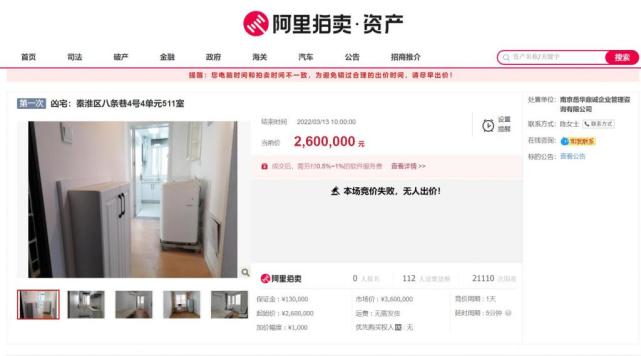 位于南京新街口的学区房,降价100万拍卖,你有没有心动?不过高诱惑也伴随着高风险,因为8年前,曾有租客在这套房子里上吊自杀。3月13日,现代快报记者了解到,南京这套学区房在阿里拍卖平台进行拍卖,但因为无人出价已流拍。