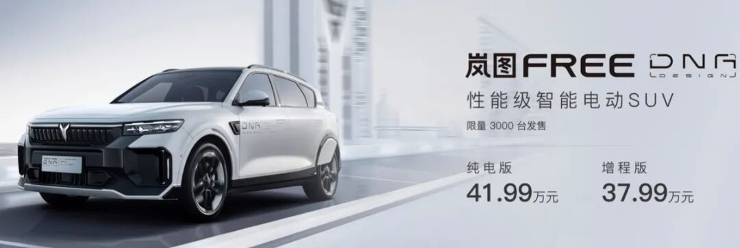 8月26日,在2022第二十五届成都国际车展上,岚图FREE的个性化定制版——岚图FREE DNA正式上市,拥有纯电版和增程版两个版本,售价37.99万元-41.99万元,限量3000台。