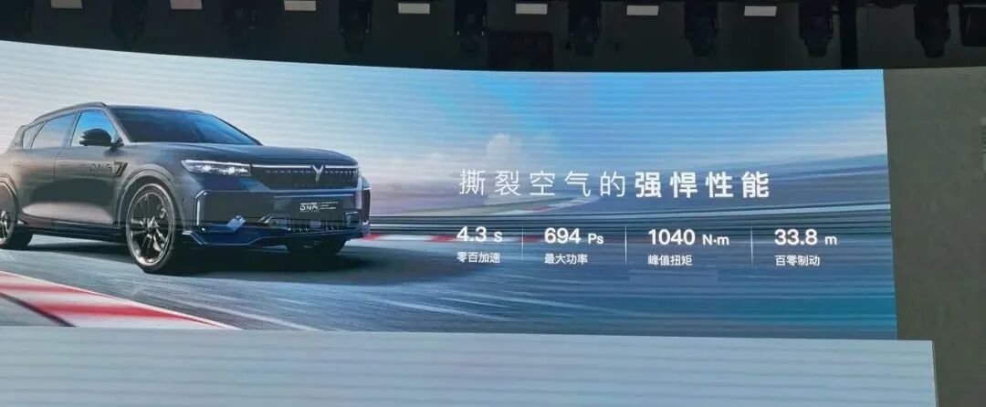 动力方面,纯电动版和增程式版均拥有夸张的动力参数,新车综合最高功率510kW(694Ps),峰值扭矩1040牛·米,零百加速4.3秒,极速可达到200km/h,百公里到零最短制动距离仅为33.8米,是目前国产拥有最强性能参数的SUV之一。