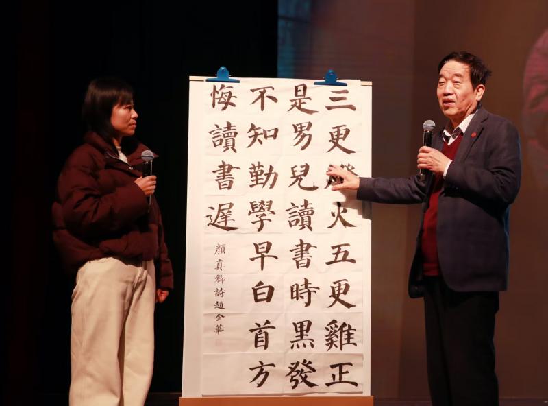 讲座现场,苏士澍围绕“写好中国字做好中国人”主题,分享书法精髓与人生感悟。他结合自己数十年的研习与创作经历,深入浅出地解析了中国书法的历史脉络、美学精髓与文化内涵。从一点一画的笔法讲究,谈到间架结构的平衡之道,再到整体章法的气韵生动,娓娓道来,引得台下观众或凝神聆听,或提笔记录,沉浸于翰墨书香构筑的艺术世界。