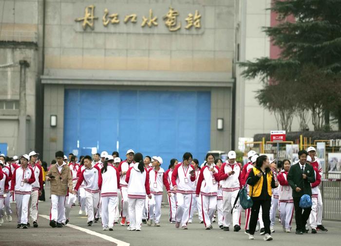 学子们在丹江口大坝参观学习。