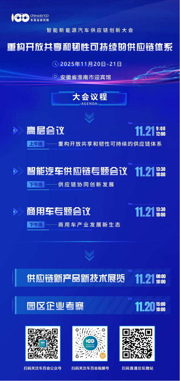 为推动产业协同创新与区域联动发展,11月20日-21日,车百会联合淮南人民政府将在淮南举办智能新能源汽车供应链创新暨淮南深度融链发展大会。