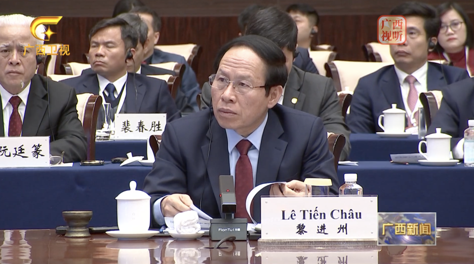 陈刚提到,“站在新的起点上,广西愿与越南五省市深入贯彻落实中越两党两国最高领导人达成的重要共识,继续携手并肩”。