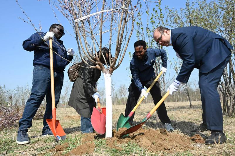 4月2日上午,2026年“中外友谊林”义务植树活动在北京市顺义区举行,来自埃及、埃塞俄比亚、赞比亚、巴基斯坦、越南等八国驻华外交官,以及北京市委宣传部、北京市广播电视局、顺义区委区政府等相关人员共80余人齐聚牛栏山镇中心公园,携手播撒绿意,让中外友谊在春日里生根发芽。