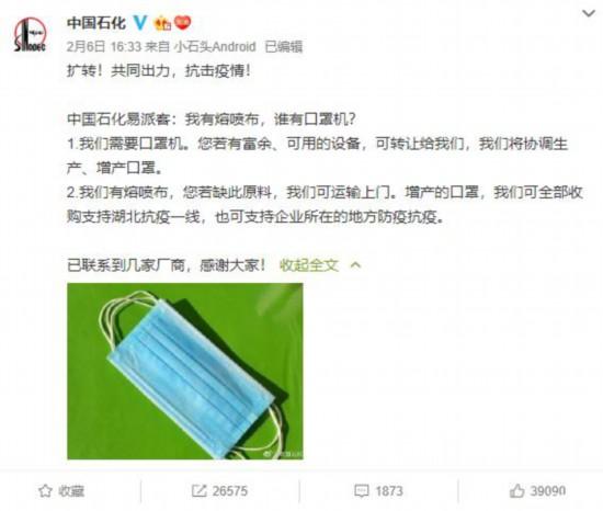 除了这些企业供应材料外,中国石化等企业已经公开发微博表示愿意提供熔喷无纺布,愿意为缺乏原材料的口罩生产商送货上门,并收购增产口罩,发往湖北支援疫情。综上所述,在目前这个节骨眼上,原材料已经不是制约口罩产能攀升的瓶颈。