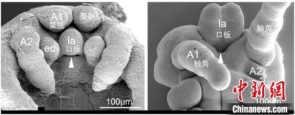 此次发表的论文中,研究人员还就射齿类动物(如奇虾)身体结构中可能与真节肢动物口板同源的结构展开了讨论。射齿类动物的大爪肢是否是真节肢动物口板的同源结构,是研究人员下一阶段要解决的科学问题。 (记者 刀志楠 云南大学供图)