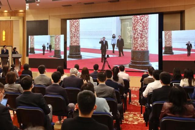 跟去年一样,记者们仍然在梅地亚通过视频进行提问。