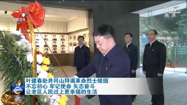 履新后两天(10月23日),叶建春到井冈山拜谒革命烈士陵园。他说,“大力弘扬井冈山精神,不忘初心、牢记使命、矢志奋斗”。