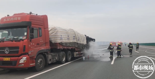 南昌:后车狂按喇叭!货车司机才知轮胎起火,半车胡萝卜被烤熟