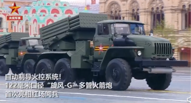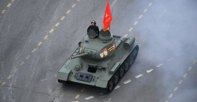 与往年一样,打头阵的依然是被誉为“传奇坦克”的T-34坦克。T-34坦克因性能可靠、操作简单等优点深受好评,曾在二战中立下汗马功劳,是胜利日的象征。此外,配备有自动制导和火控系统的122毫米口径“旋风-G”多管火箭炮系统今年首次亮相红场。