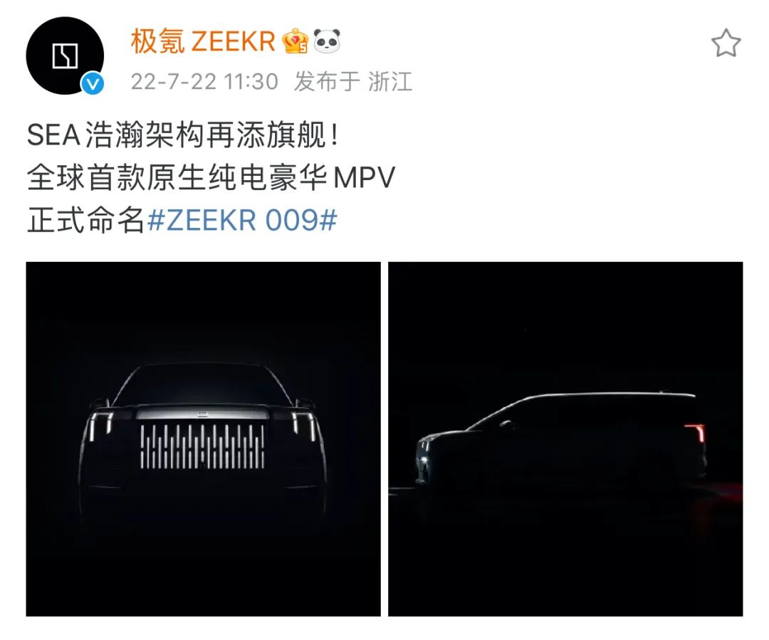 ZEEKR 009正式官宣,极氪首款MPV预告图曝光
