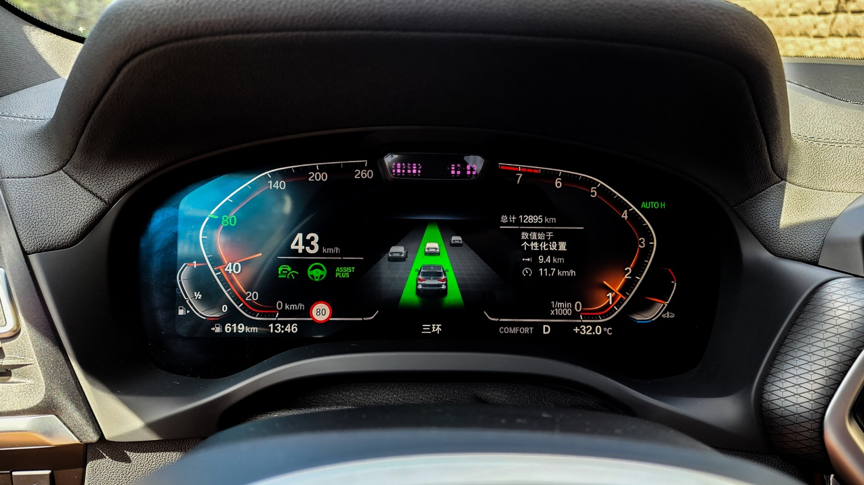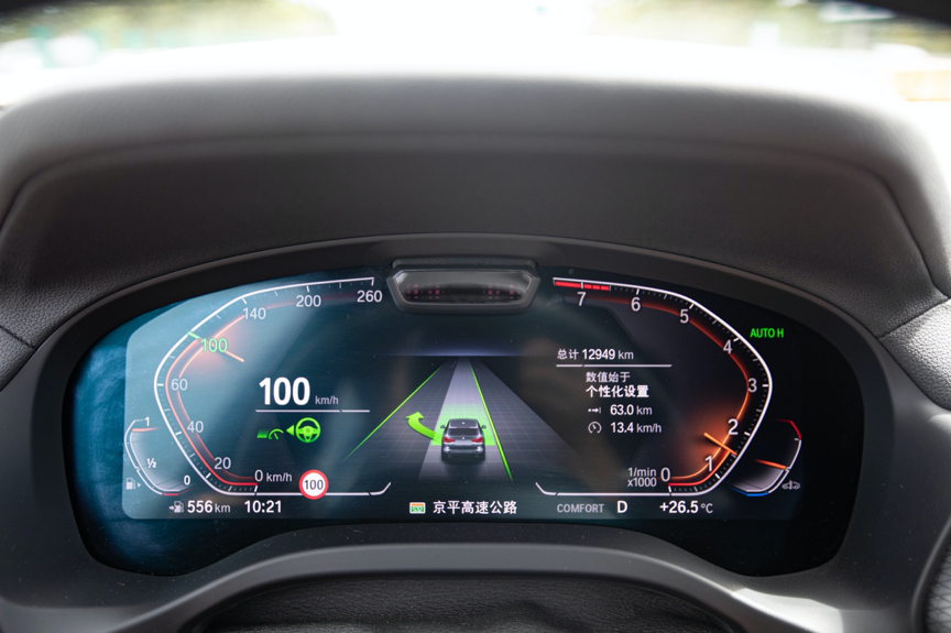 本次的试驾车还选装了BMW Personal Copilot Pro自动驾驶辅助系统,驾驶辅助系统在车道居中、与前车的距离把控都控制的不错,对于前方突然并线的车辆会及时作出减速反应。时速70公里以上可以激活辅助并线功能,使用时需一直轻拨转向灯拨杆,系统确认车辆本车道与目标车道的前后车辆均处于安全距离后完成并线。