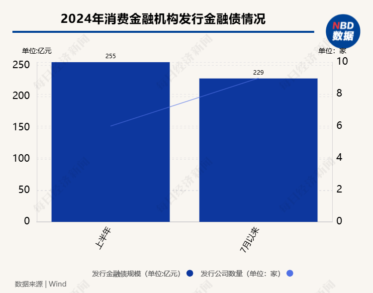 Wind数据显示,7月以来,共有9家持牌消费金融机构累计发行229亿元金融债,而今年上半年的发债总额255亿元。其中,7月持牌消费金融机构的金融债发行总额达到121亿元,创下年内单月最高值。